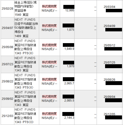 7月~9月、そして12月に「東証REIT指数ETF(1343)」を複数回に分けて追加で購入しました。