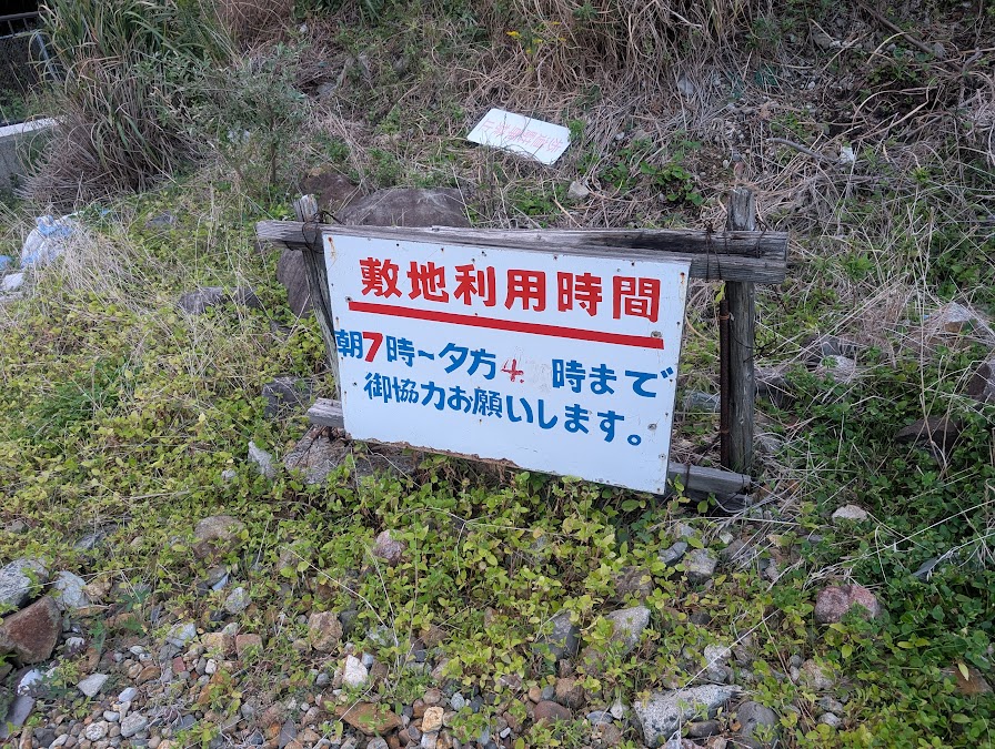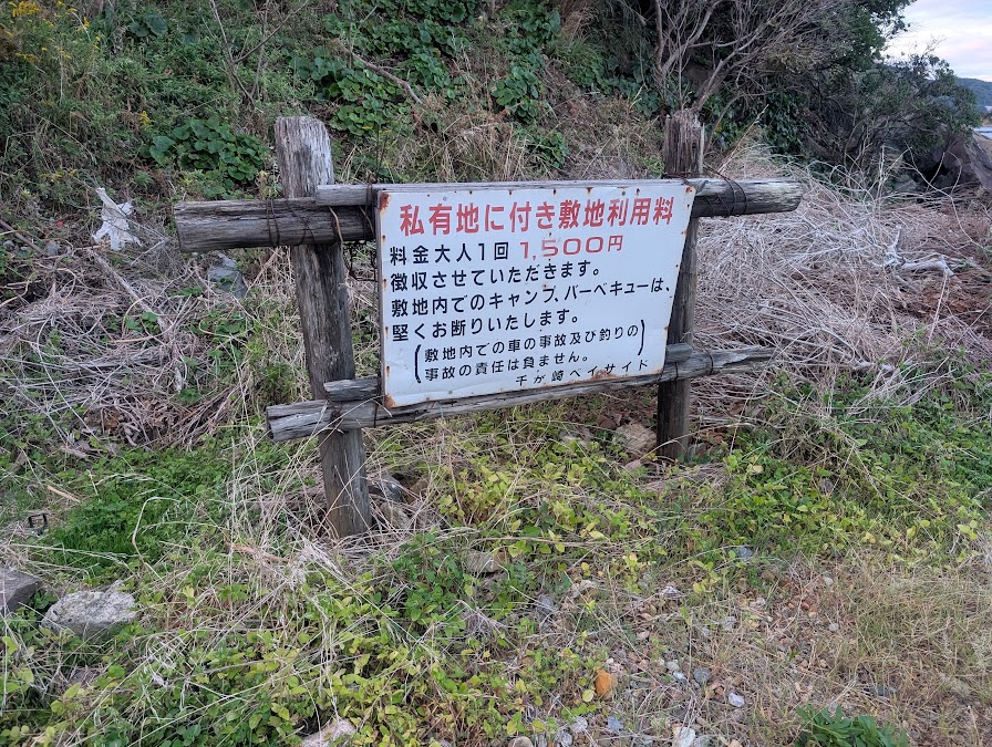 この地磯は近所の渡船屋さんが管理しているようで、画像のような看板が設置してあります。看板の内容をまとめると以下の通りです。(看板に無い内容は領収書に書いてありました。また、管理者の方に直接言われました)