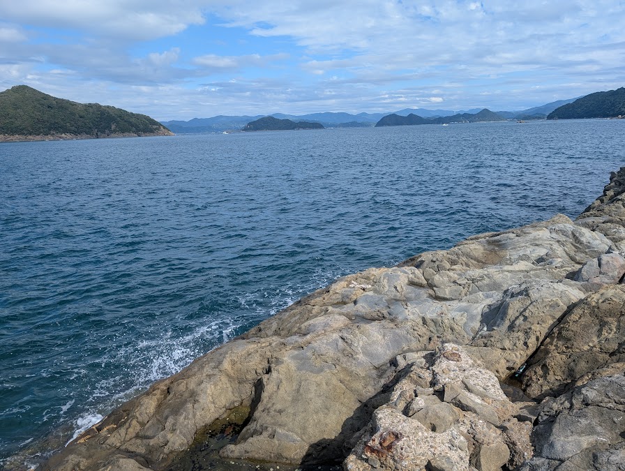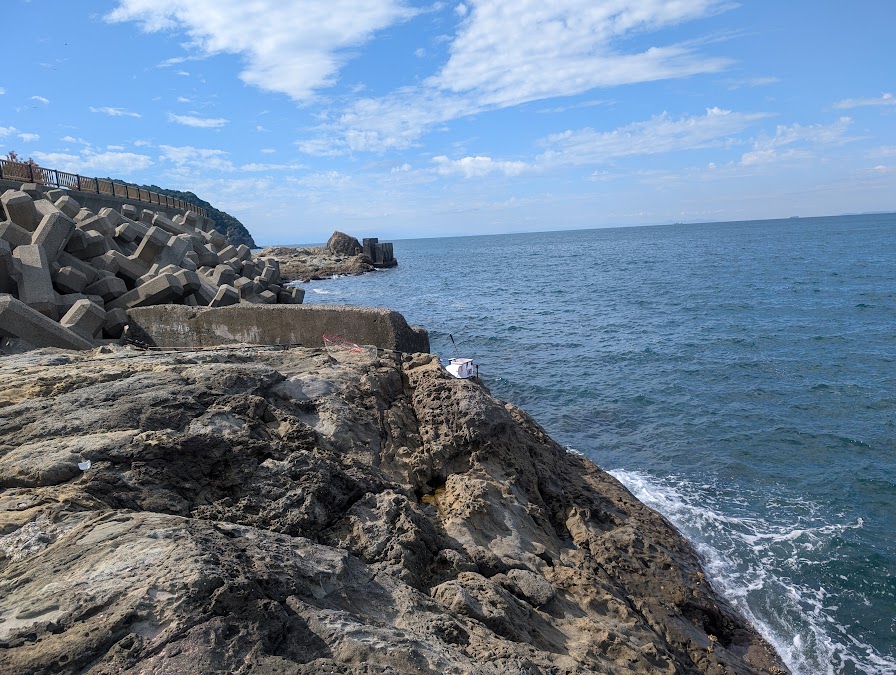 沖に出た磯からでも釣りはできそうですが、足元がガチャガチャしていますので、少し釣りにくいかもしれません。