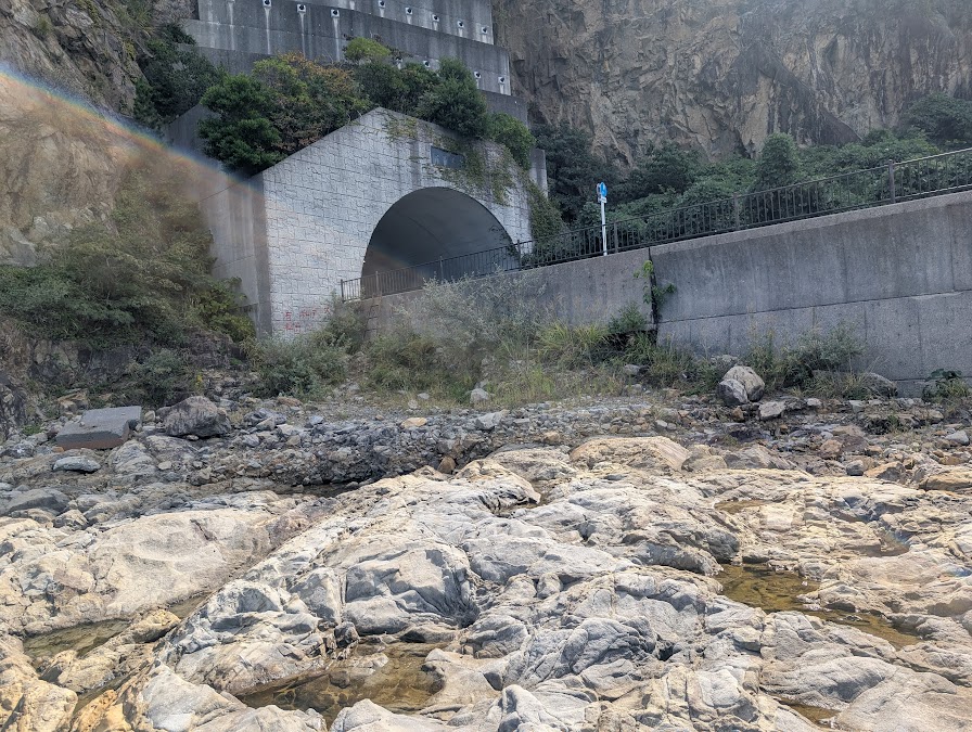 釣りができるポイント的には、「駐車スペース下」「沖に出た磯」「コンクリートの足場」「トンネル手前の磯」の4カ所になると思います。