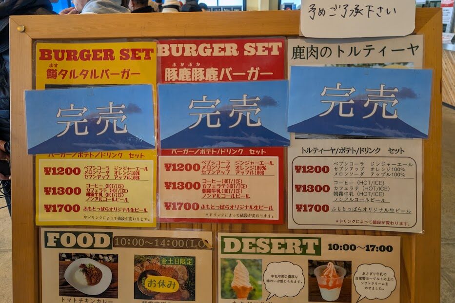 設営を終えて一息つくと、時刻は11時になっていました。 お目当ては、場内にある「金山テラス」の「豚鹿豚鹿(ぶかぶか)バーガー」です。