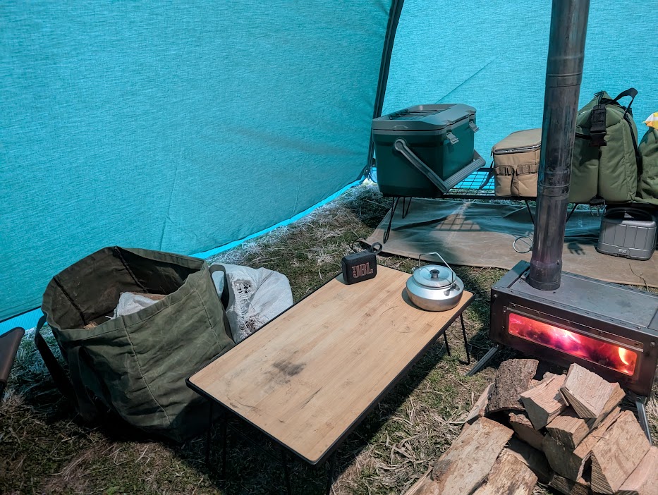 耐風性に定評のあるワンポール構造であり、かつ、風が強くてもタープなしでリビングスペースを確保できる「サイドフラップ」付きのこのテントがベストだと判断したからです。