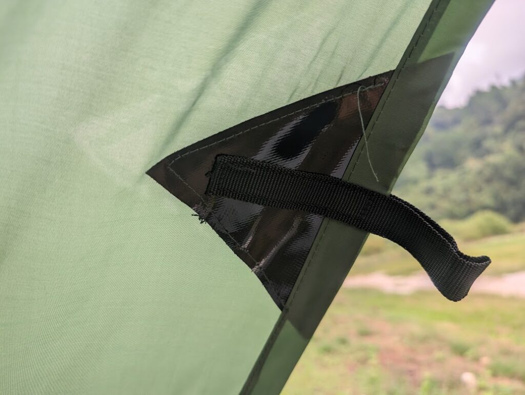 主にループの補強部分のシームテープの処理が雑に感じます。今まで色々なタープを購入してきましたが、ここまで雑なのは初めてだったので驚きました。