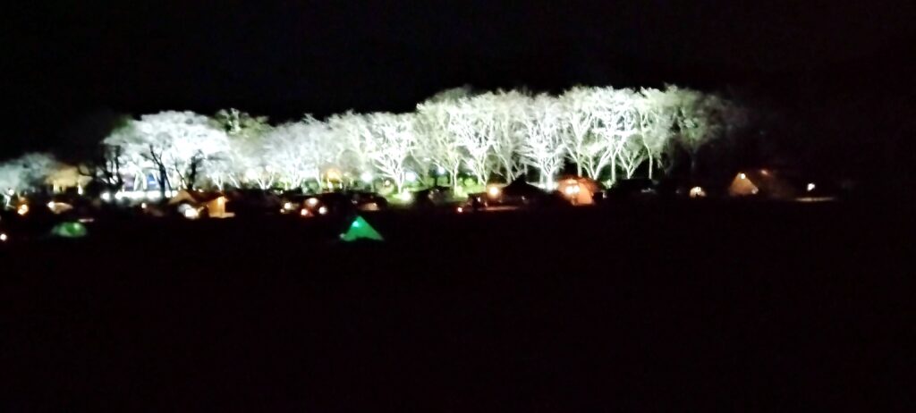 特に前半はキャンプ場内の桜を目当てにキャンプ客だけでなく「純粋な花見客」も押し寄せます。毎年3月下旬~4月上旬は桜のライトアップも行っています。