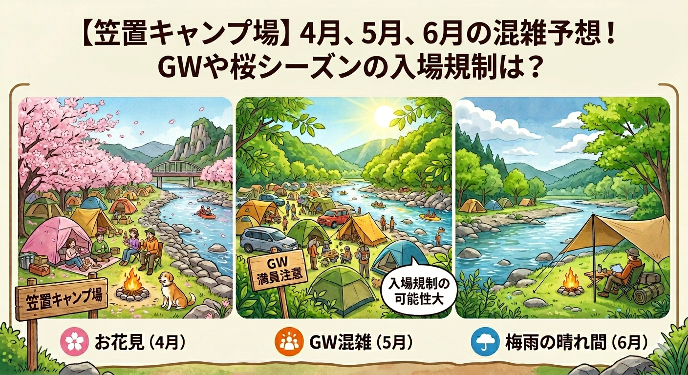 【笠置キャンプ場】2026年、4月、5月、6月の混雑予想!GWや桜シーズンの入場規制は?