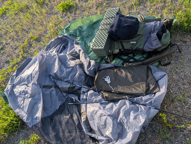 普段のキャンプでは焚き火をしたり、薪ストーブで遊んだりして、暇を楽しむ感じなのですが、釣りキャンプでは、キャンプは最小限の装備でキャンプをしています。
