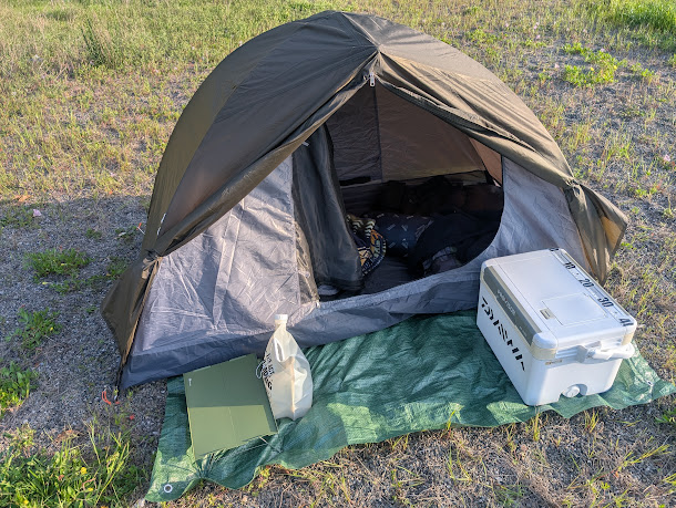 釣りキャンプと言っても私の場合「釣りをしながらキャンプをして釣った魚で料理を作る」的なレベルの高いものではなく、ただ単に「釣りの前日にキャンプをする」という感じです。