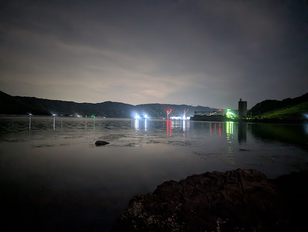 ご飯を食べた後、いつもは焚き火をしたり、YouTubeを見たりするのですが、今回はすぐそこで釣りをしようと思って青イソメを買ってきました。