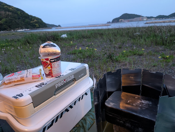 6時からフカセ釣りをしたいので4時30分に起きて、パンとカップスープでサッと朝ごはんを済ませます。