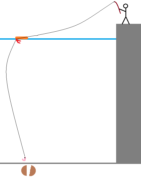 - 水深は浅すぎても深すぎてもやり難い(初めのうちは5~10m位がやりやすい)