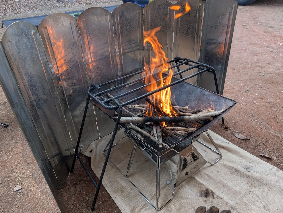 着火の際はある程度の炎が上がって、焚き火の温度が程度高くならないと火が付きづらいです。