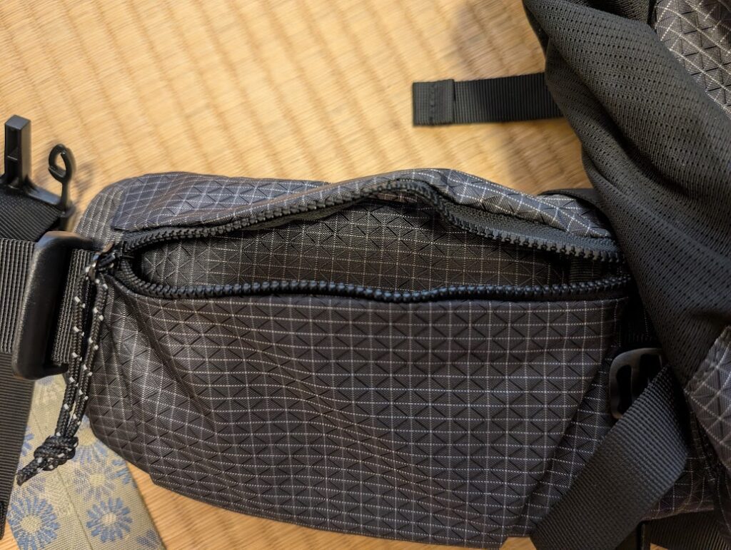 ヒップベルト部分ポケットです。ギリギリスマホを入れることが出来ましたが、スマホの大きさによっては入らないと思います。