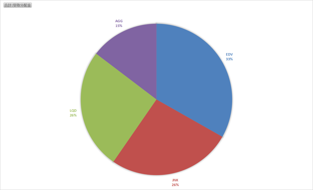 下のグラフは米国債券ETFの銘柄別の受取分配金の割合です。