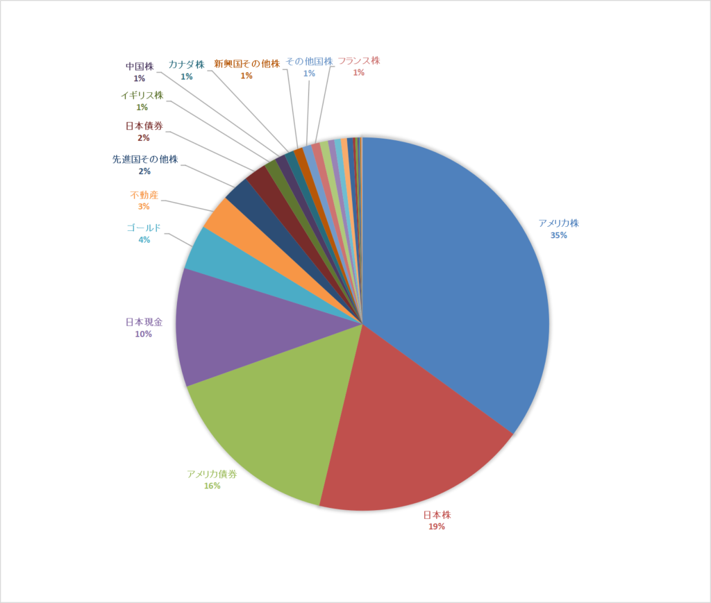 大きく株価が上昇しているので、株資産の割合がもっと多くなっているのではないかと思っていたのですが、そこまで大きくなっていませんでした。
