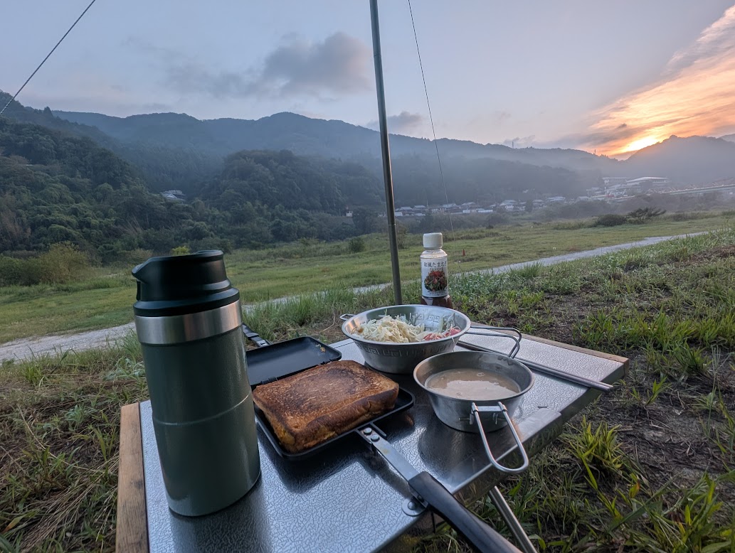 翌日は5時に起きました。というのも、日が昇ってくると暑くなるので、朝食作りやある程度の片付けを朝の涼しい時間にやっておきたかったからです。
