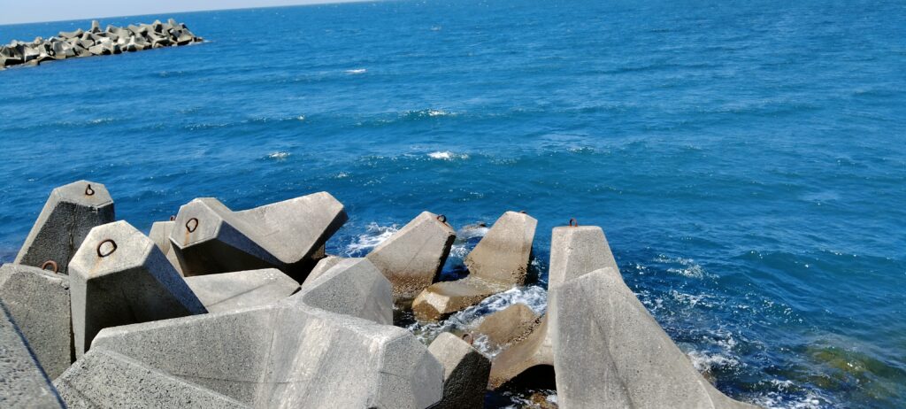 外洋に面しており潮通しは抜群なのですが、巨大なテトラポットが入っています。結構な高さもあり危険を感じるレベルなので、無理な釣行は禁物です。