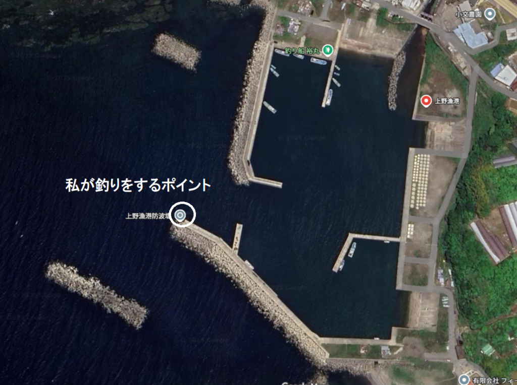 私がいつも釣りをするのは、この大きな南側の波止の先端内側。