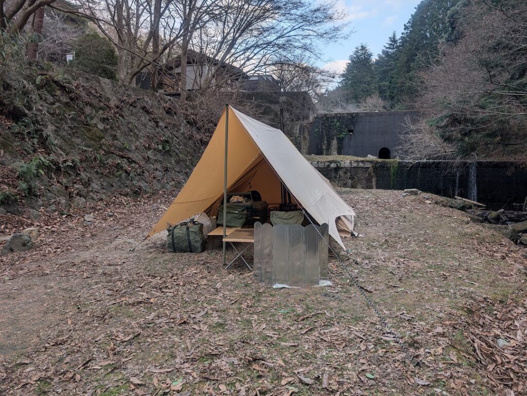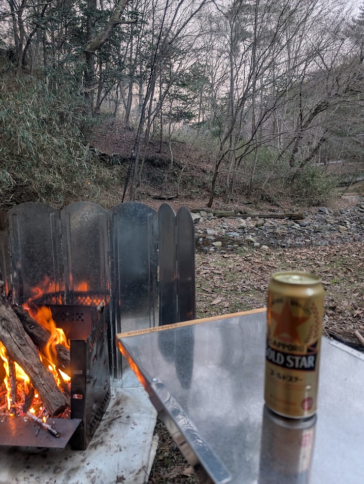 夕食は外で焚き火で作りたかったので、寒さ対策のためウインドスクリーンを持ってきました。
