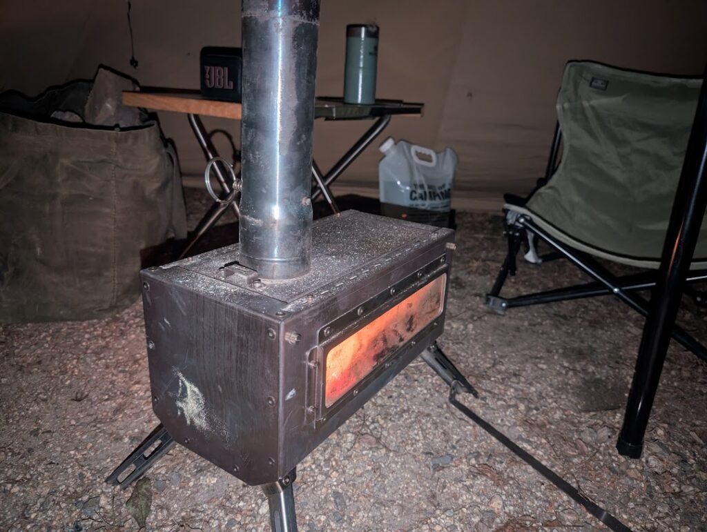 テントに入ってからは、焚き火の火を薪ストーブに移し、のんびりゆっくり過ごします。